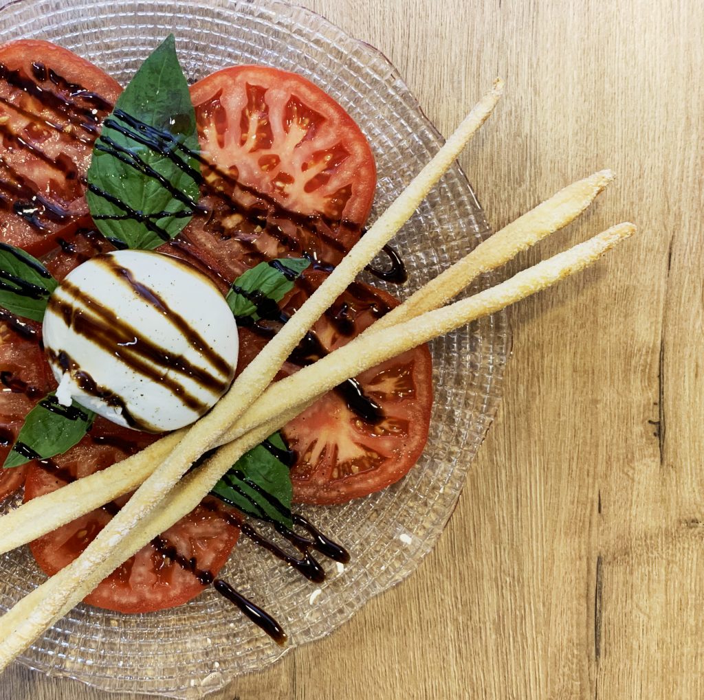 Burrata cremosa, ingredientes frescos y el toque perfecto del Mediterráneo.
